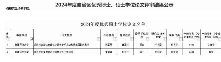 近日,学院教师阿不拉·玉素甫获批国家体育总局重点项目1项。该项目聚焦“集体球类项目区域突破发展研究”,对推动体育领域相关研究的深入发展具有重要意义。曹玉萍指导的硕士生论文荣获自治区优秀论文。这篇论文在选题、研究方法、学术创新等方面表现出色,体现出研究生教育质量不断提升。