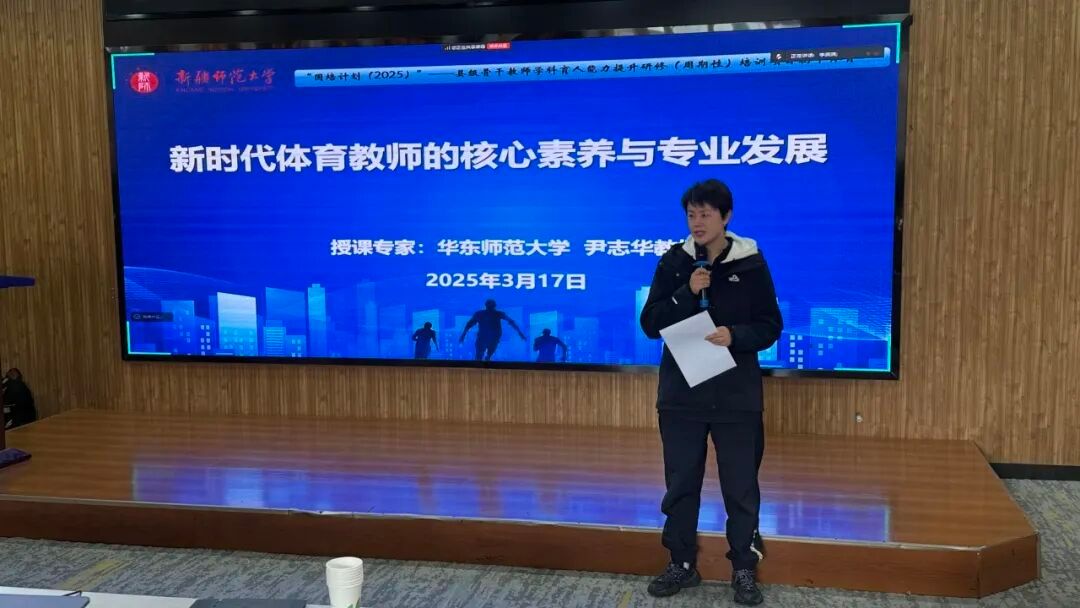 为推动新疆基础教育学科教育高质量发展,提高县级骨干教师学科育人能力与专业素养,2025年3月17日,“县级骨干教师学科育人能力提升研修(周期性)培训项目(初中体育)”专题讲座在昆仑校区议课厅开展,我院副院长曹玉萍作讲话,本次培训项目专题讲座邀请华东师范大学博士生导师尹志华教授,来自全疆各地州的50位县级骨干教师参加。