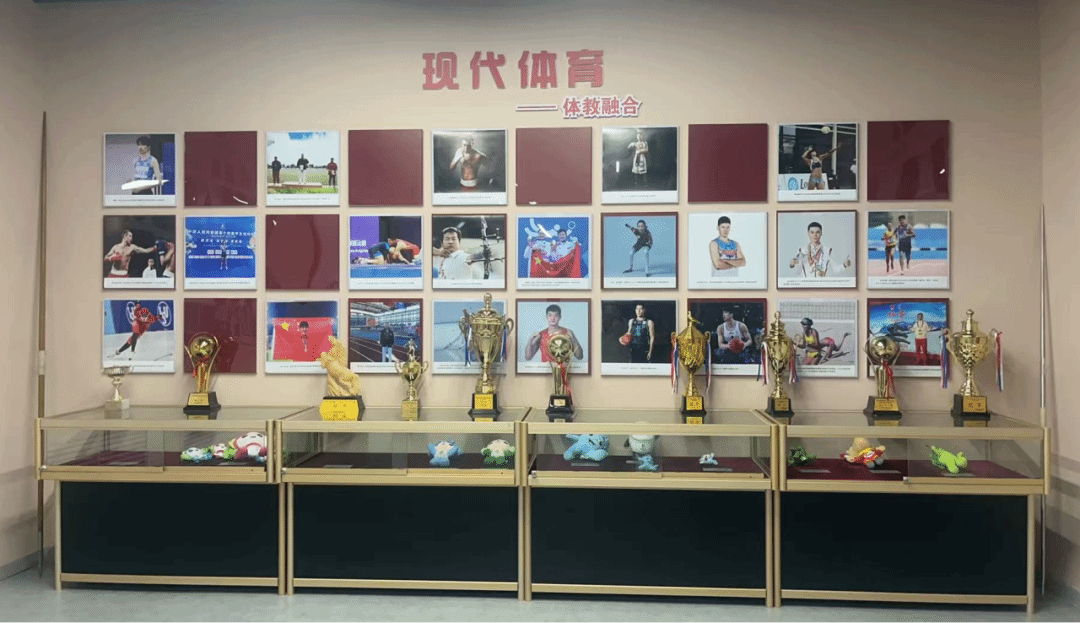 现代体育展厅从多元维度生动诠释我院竞技体育的活力与荣光。玻璃展柜内陈列着重大赛事的璀璨奖杯、运动员签名的比赛用球,每一件展品都镌刻着拼搏的记忆;荣誉墙上展现的优秀教练员的专业身影、运动员的奋斗风采、裁判员的严谨姿态,尽显我院竞技体育的深厚底蕴与蓬勃朝气。
