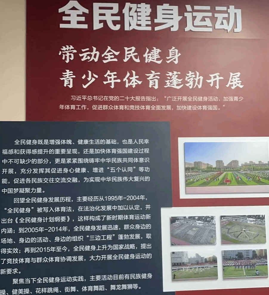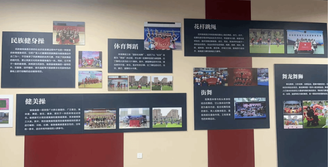 全民健身运动展厅聚焦当下全民健身运动实践,将我院师生参与健身的火热场景生动铺展,既有展现各民族文化交融的民族健身操,也有节奏明快的健美操、充满优雅气息的体育舞蹈、洋溢着青春潮流的街舞,还有充满喜庆氛围极具感染力的舞龙舞狮等多元活动内容。