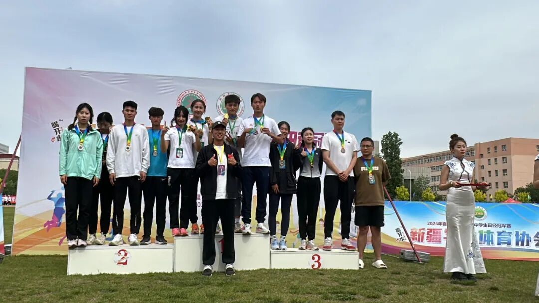 近日举行的2024年自治区大学生、中学生田径冠军赛传来好消息,经过三天的激烈角逐,我校共获得11枚金牌、16枚银牌、11枚铜牌,以团体总分356分的好成绩获得大学乙组第一名。我校教师鲍晓玲获得“优秀裁判员”称号,崔皓宇、阿布都克依木·阿布都热合曼获得“优秀教练员”称号。