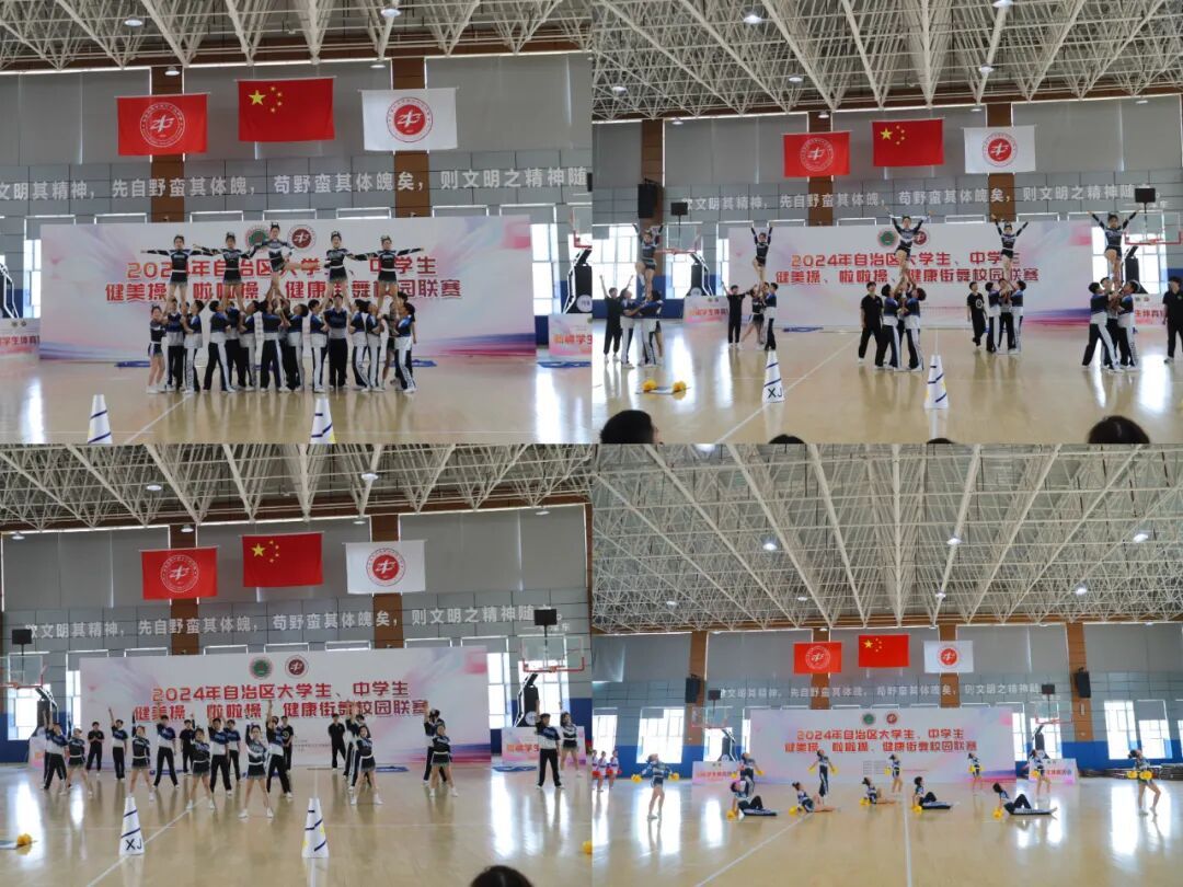 在新疆师范大学校党委、校办、学生处和教务处领导的关心与支持下,体育学院阿不拉·玉素甫副院长为领队、翟伟老师为教练员,带领新疆师范大学健美操队参加了2024年5月10日-12日在新疆乌鲁木齐市第二十三中学举行的“2024年自治区大学生、中学生健美操、啦啦操、健康街舞校园联赛”,通过团结协作、努力拼搏,取得了: